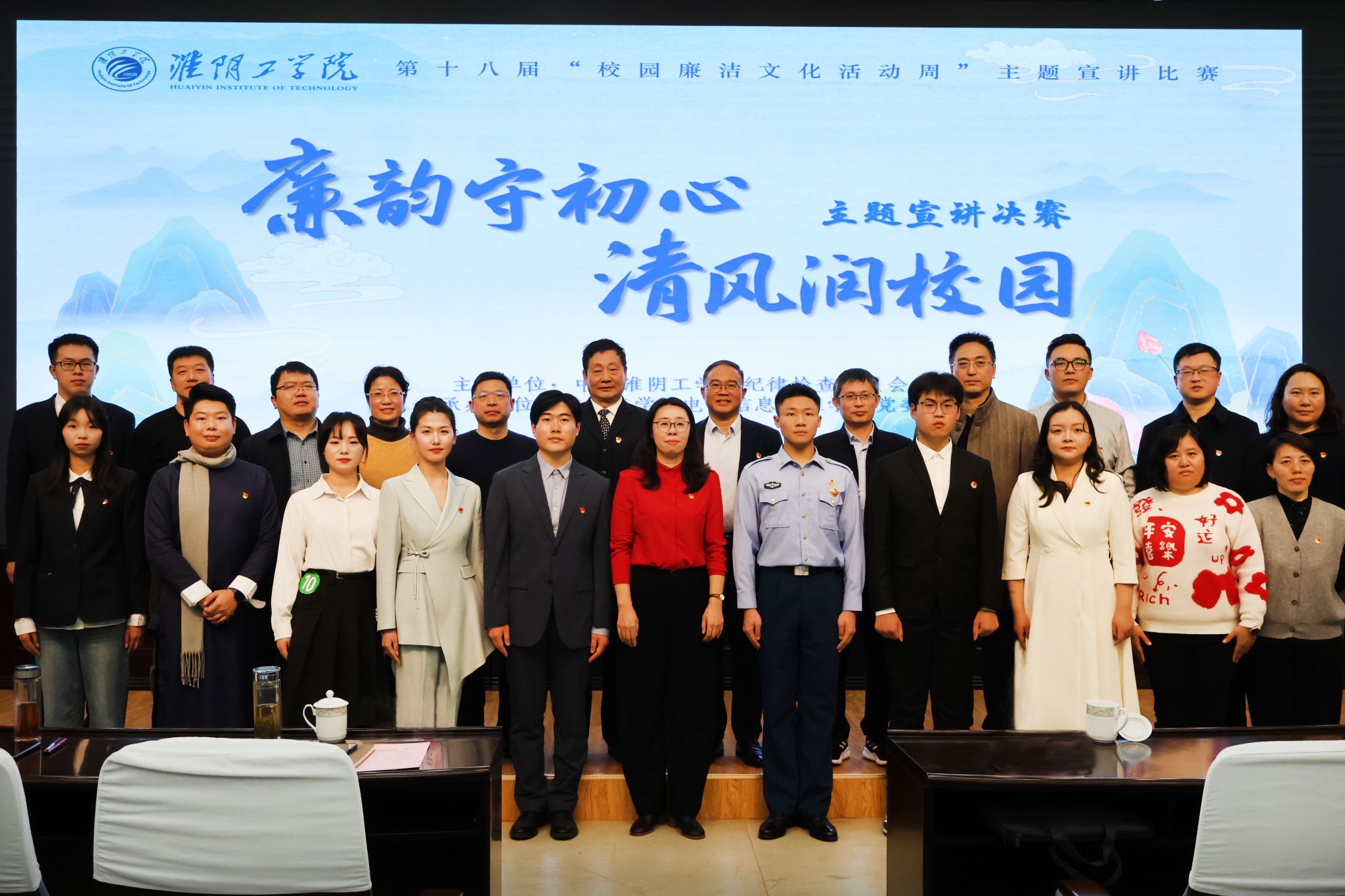 葭月廉韵守初心,清风润满淮工园。12月12日下午,由校纪委主办、电信公司党委承办的校第十八届“校园廉洁文化活动周”主题宣讲比赛在枚乘路翔宇报告厅举行。公司党委常委、纪委书记章益雷,相关职能部门负责人,各二级党组织纪检委员及师生代表参加活动。