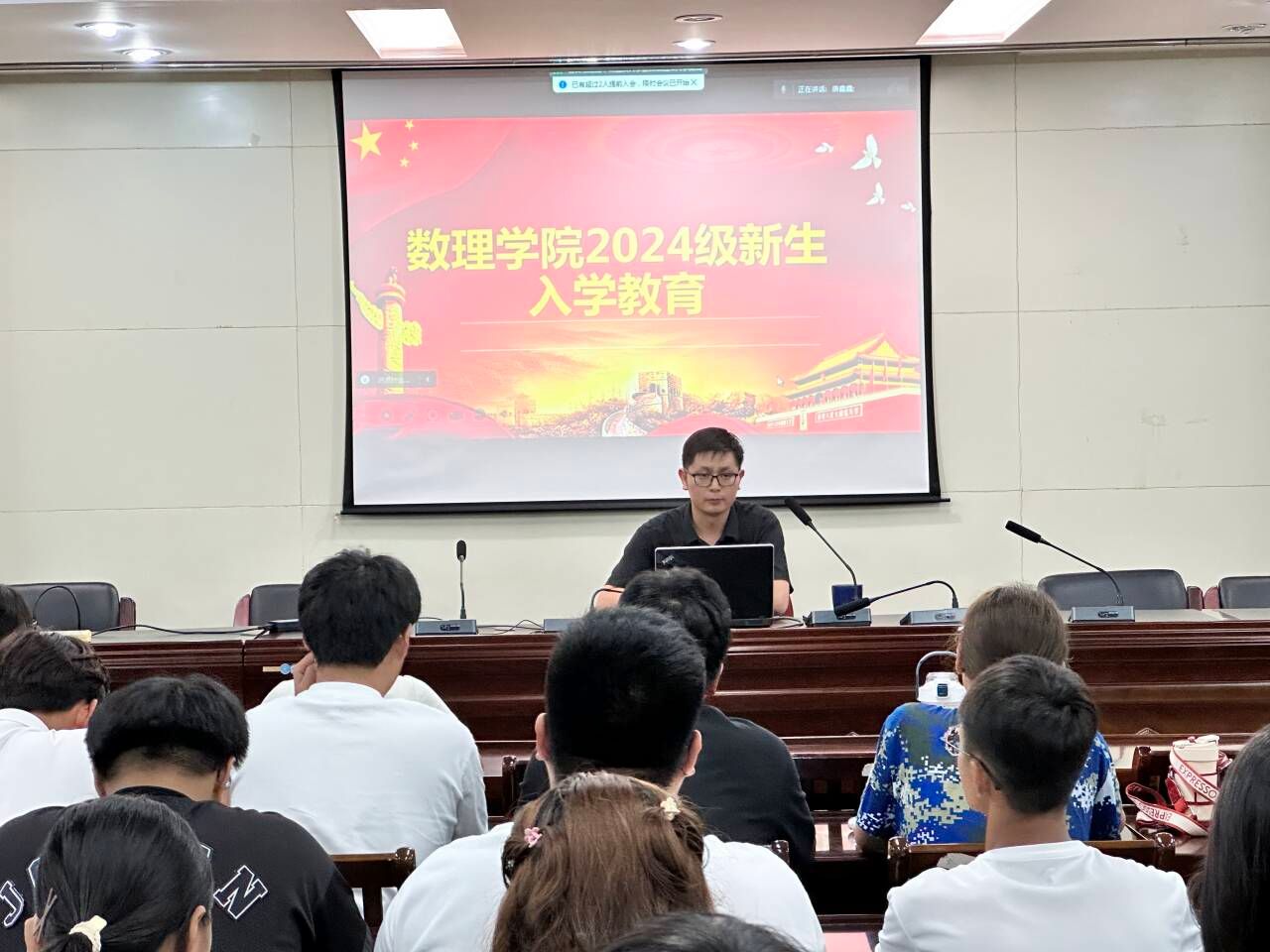 2024级辅导员唐鑫鑫向同学们强调新生入学教育是新同学进入大学的第一门“必修课”,大家务必要扣好这入校后的“第一粒扣子”,尽快适应新环境,顺利转变角色,开启大学新生活,他重点围绕理想信念教育、专业成长定位、公司章程、校园文化融入、学习生活适应、安全教育等方面进行宣讲。