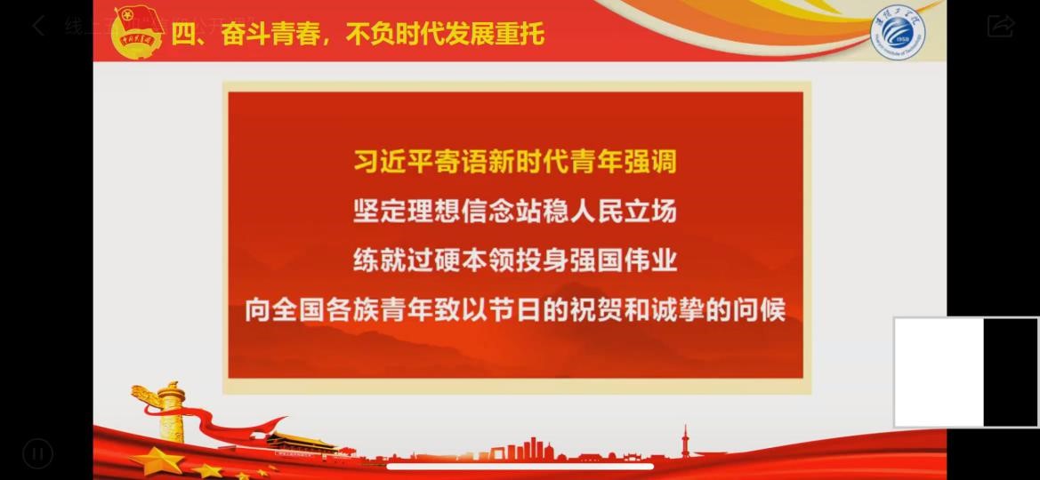 各班级组织参加两项集体活动:五月四日上午共青团中央的微博话题以及直播的观看,并收获感想。五月四日晚上各班级组织观看了赵书记的直播,并收获感想。