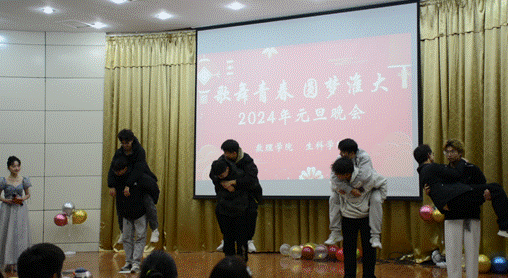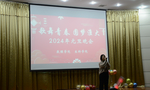 12月28日晚,由必一运动和生科公司联合举办的“歌舞青春 圆梦淮大”2024年元旦晚会在公司枚乘路校区图书馆报告厅隆重举行。公司党委副书记、副经理张万方,学工办主任唐鑫鑫,团委副书记韩立宇等老师到场与同学们共度美好时光。