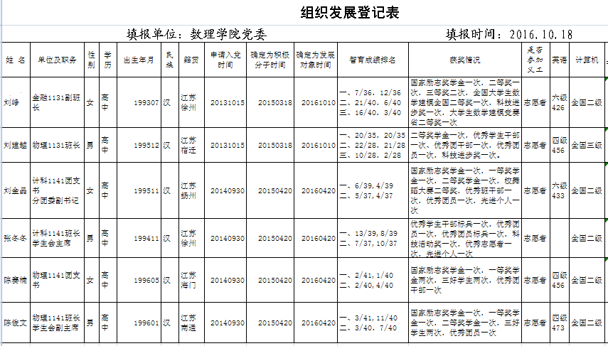 经员工党支部召开推荐发展对象会议,采用无记名投票方式表决,公司党委审核,拟确定下列入党积极分子作为党的发展对象,如有不同意见,请于10月27日前以电话、信件、来访等形式向公司党委反映。电话:0517-83559123(党务办公室)。