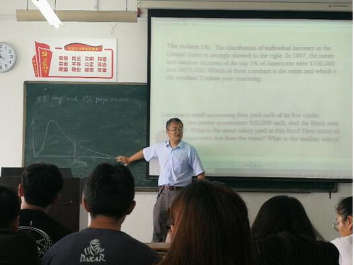 6月24日到6月27日,必一运动邀请美国佐治亚州立大学赵亦川教授来校为公司计科1181班本科生授课,赵教授主讲的课程是《应用统计概论》。 赵教授用生动的案例向同学们讲解了简单抽样、中位数、平均数统计量、生存分析、经验似然方法等统计学基本概念。赵教授严谨求实的语言、浅显生动的表述使整个课堂轻松活跃而又不失学术氛围。