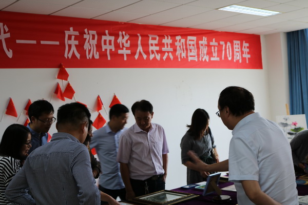 本次展览共展出作品100余件,全部是公司师生自己精心创作的书法、绘画、摄影和收藏等作品。一件件书法、绘画、摄影等作品充分展示了师生们对伟大祖国70周年华诞的祝福,歌颂党的丰功伟绩。老师们的收藏作品也都有属于它的时代、环境,展现了深刻的时代精神,记录了新中国的光辉历程,大家一边参观一边进行解读,讲述了这些收藏作品背后的历史故事,让在场的每一位师生都感到震撼。