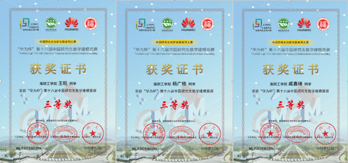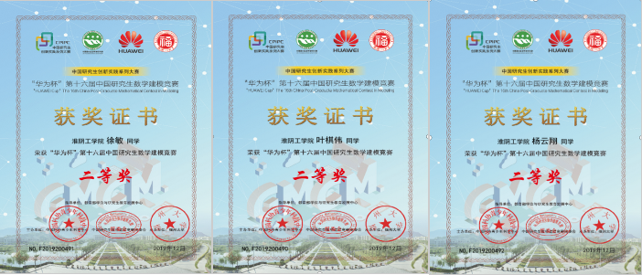 “华为杯”第十六届中国研究生数学建模竞赛结果日前正式公布,公司组织了6支队伍参赛,其中叶棋伟、徐敏、杨云翔团队荣获二等奖,丁浩、吴静、吴婷婷团队和王旺、杨广栋、戚嘉琦团队都荣获三等奖,总获奖比例达50%,创造了历史最好成绩。