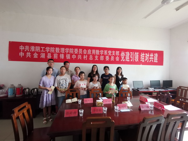 活动中,应用数学系党支部书记刘绪庆与中兴村党总支书记刘大芹签订了共建合作协议书,支部党员代表向中兴村贫困儿童发放了助学金,捐赠了一批图书助力中心村建立“农家书屋”。