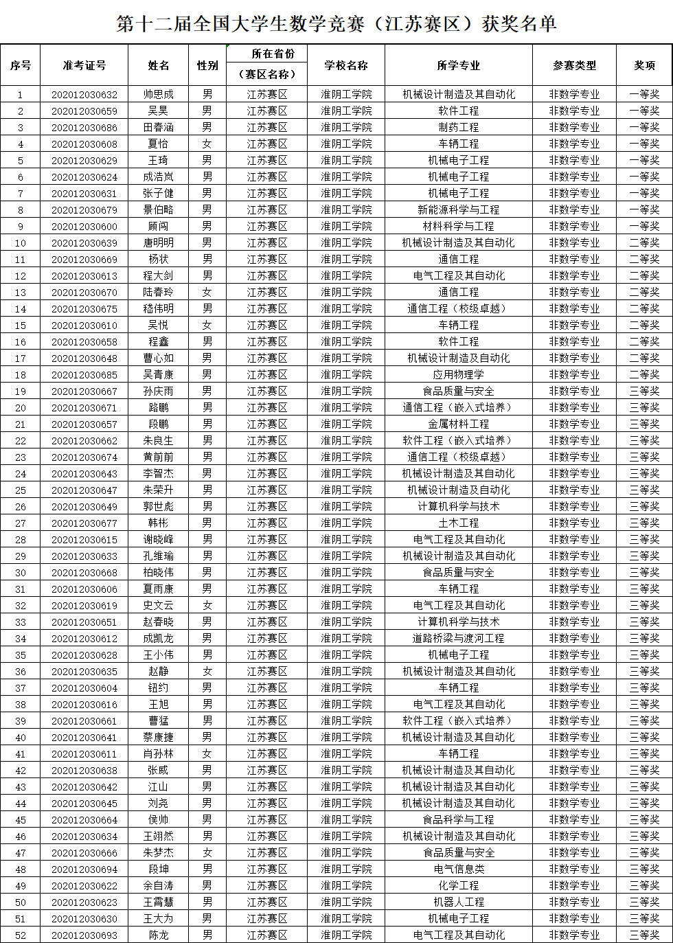 近日,第十二届全国老员工数学竞赛(江苏赛区)结果公布。公司员工在非数学专业类中,共有52人获奖,其中一等奖9人、二等奖9人、三等奖34人,在数学专业类中,共12人获奖,其中一等奖3人、二等奖6人、三等奖3人,获奖总人数和质量均创历史新高。
