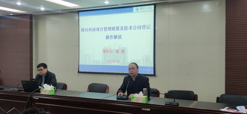 科技处处长助理张浩从经费管理办法、科研项目认定、合同登记及免税办理和案例分析这四大类进行了详细解读,重点介绍了经费支出管理,以及合同如何在江苏省技术合同认定服务平台登记管理等事项,帮助老师们更好地了解横向科研项目管理政策及操作流程。