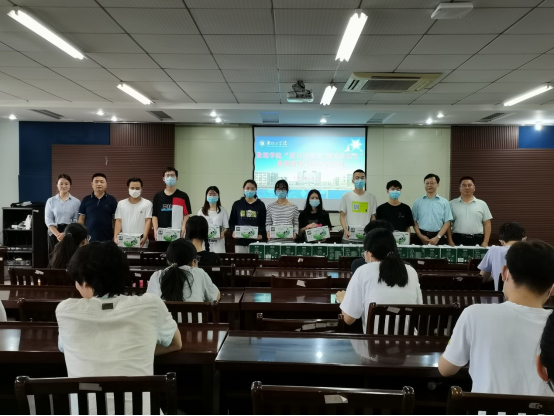 最后,老师们为暑期留校复习考研同学发放牛奶等慰问品。