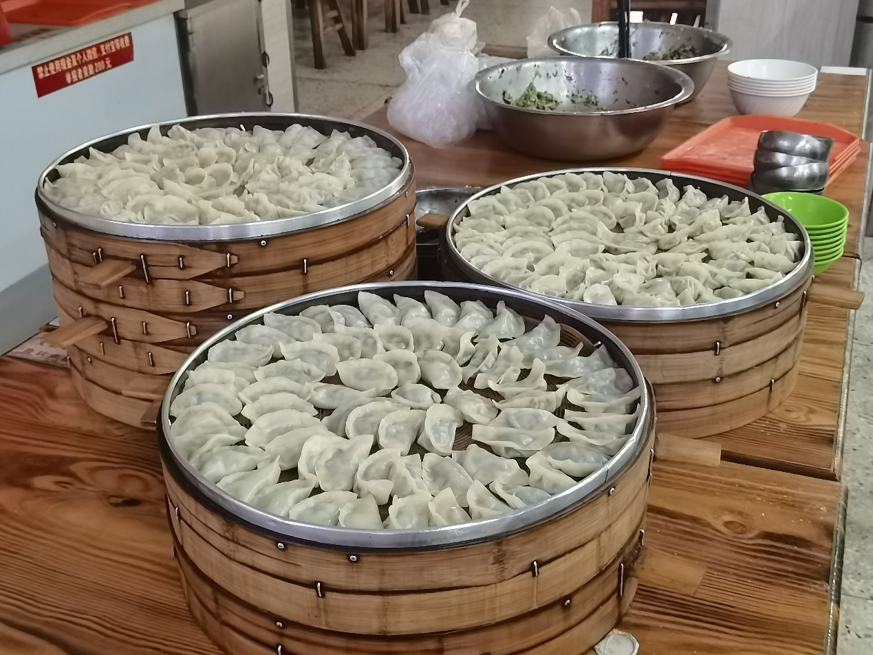 公司提前准备好馅料、饺皮、碗碟、蒸笼等材料工具,大家早早来到场地,热情高涨。活动中,老师和同学们一同上阵。防馅、对折、捏褶,大家团结协作,动作娴熟快速。不一会儿一盘盘饺子就出炉了,整个场地充满了欢笑和喜悦,浓浓的饺香温暖着每一位同学的内心。