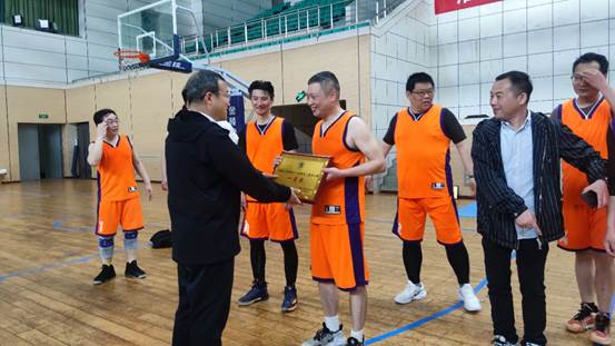 4月9日晚,校第十六届教职工篮球比赛在枚乘路校区南园体育馆圆满落幕,必一运动男篮不畏强手,凭借超强的球技和出色的团队发挥,在最终的决赛中赢得比赛,继去年夺冠后蝉联冠军。比赛结束后,公司党委副书记、副董事长吴建华为队员们颁奖并合影留念。