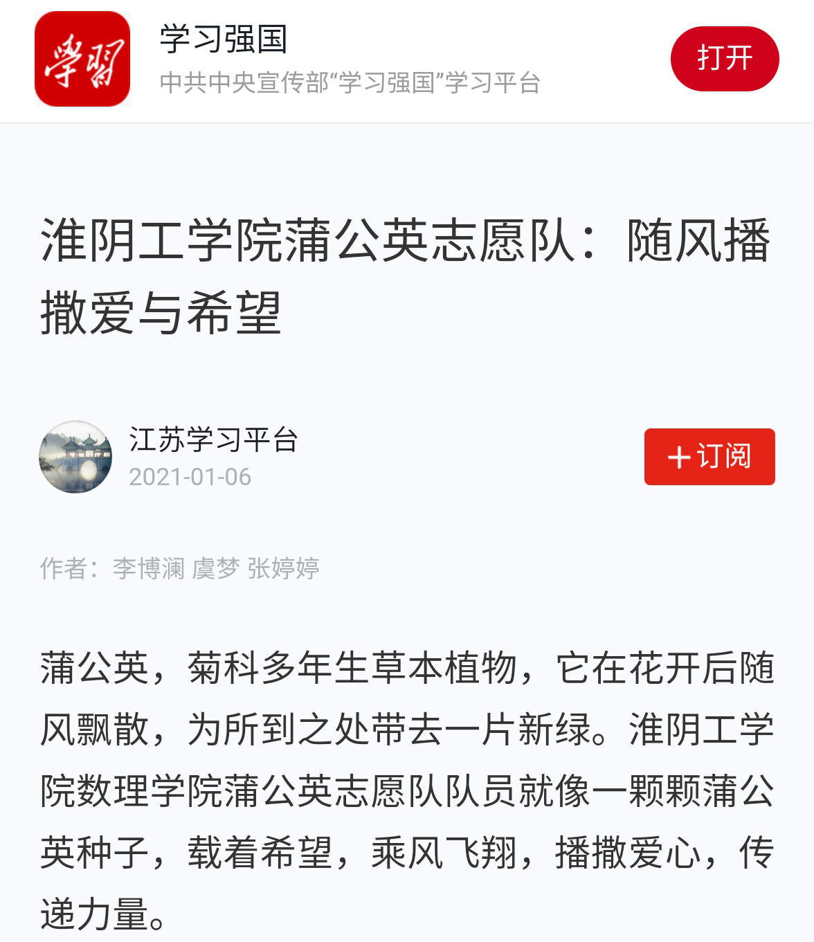 蒲公英志愿队还走进淮安市金湖县前锋镇中兴村,开展以“‘知’援乡村振兴,‘福’绵万家未来”为主题的助力贫困农业村打赢脱贫攻坚战志愿服务。志愿者们在村中协助村委会向村民普及惠民政策、收集村民诉求意愿、宣传国家乡村脱贫政策、深入农户走访调研形成系统的精准脱贫报告,促进老员工专业理论知识学习与实践能力培养的结合,在服务人民的过程中提高素质、增长才干,为中兴村实现脱贫摘帽贡献智慧力量,展现了新时代青年老员工的担当和作为。